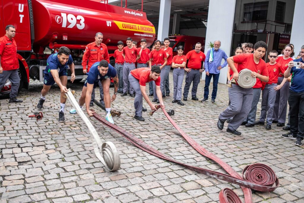 Durante a visita, os atletas conheceram a estrutura da instituição, entenderam de perto o trabalho bombeiril e participaram de atividades ao lado de crianças e adolescentes atendidos pelo projeto social dos Bombeiros. Entre as dinâmicas, participaram de um mini-jogo de vôlei e brincadeiras que simulavam o cotidiano da corporação, como a disputa para ver quem conseguia conectar mais rápido as mangueiras ao caminhão-tanque e iniciar uma operação de combate a incêndio.