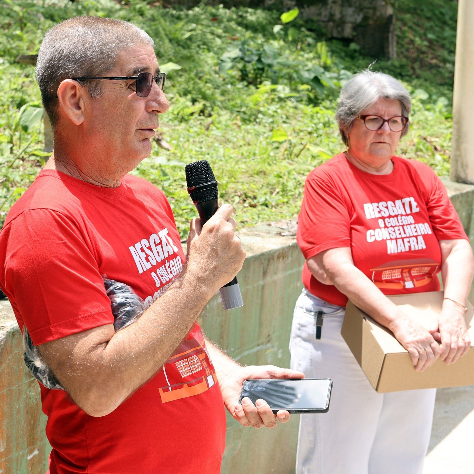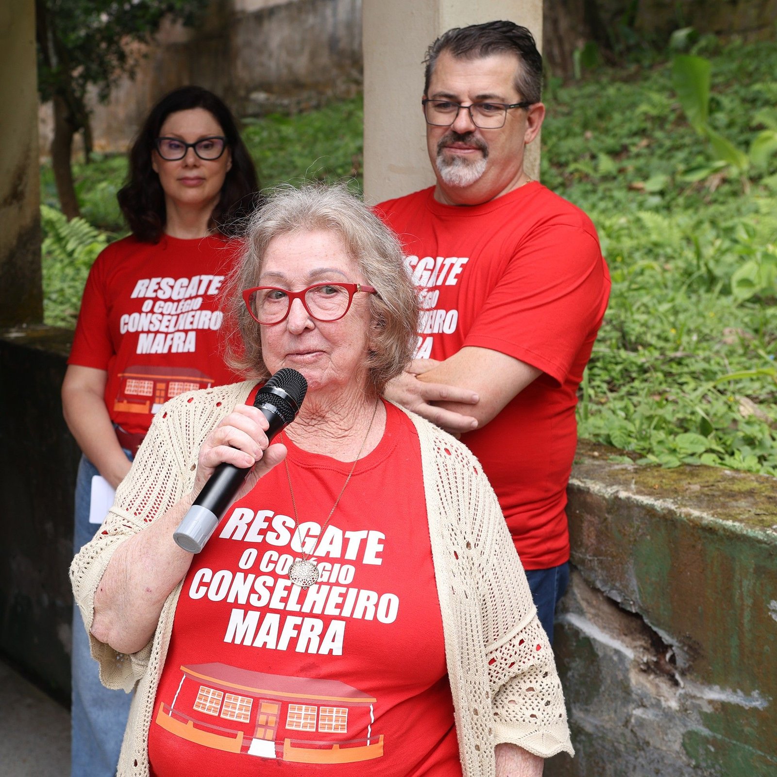 O “Abraço” levou cerca de 60 pessoas para a antiga escola. Uma das entusiastas da campanha “Resgate o Colégio Conselheiro Mafra” e idealizadora da ação, a ex-diretora Olizilma Witt, fez um apelo emocionado aos colegas e ex-alunos pelo engajamento na campanha. “O nosso colégio está vivo nos nossos corações, memória e amizades”, disse. A ex-diretora Esther Rieper Perini foi a primeira a falar para o grupo, destacando a importância do projeto de reativação do complexo pelos bombeiros.